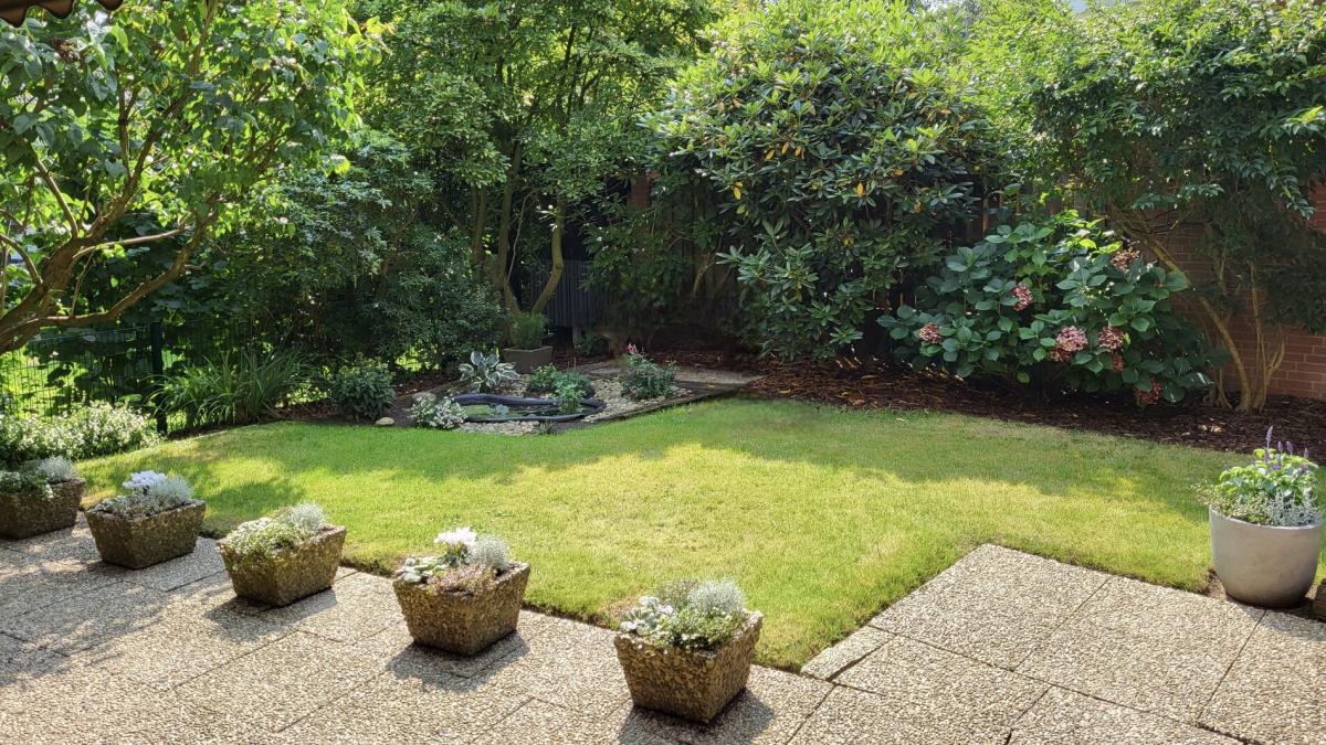 Auf der gut geschützten Terrasse mit Blick ins Grüne können Sie entspannte, ungestörte Stunden im Freien genießen. Der Wohnung ist ein Sondernutzungsrecht für einen Terrassen- und Gartenteil zugeordnet. Die übrige Fläche gehört zum Gemeinschaftseigentum, diese wird aber ausschließlich von den Eigentümern der EG-Wohnung genutzt, gestaltet und gepflegt.